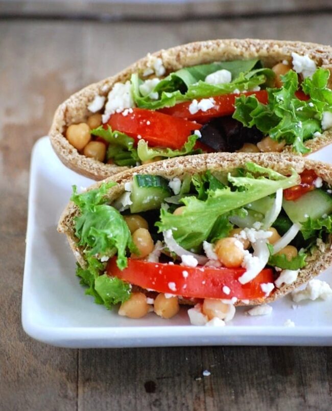 Whole grain pitas offer a great base, ready to be filled with various nutritious ingredients.