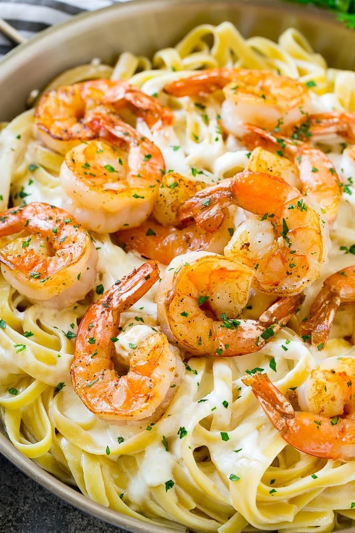 Combining grilled shrimp with fettuccine alfredo creates a delightful meal that satisfies seafood and pasta lovers.