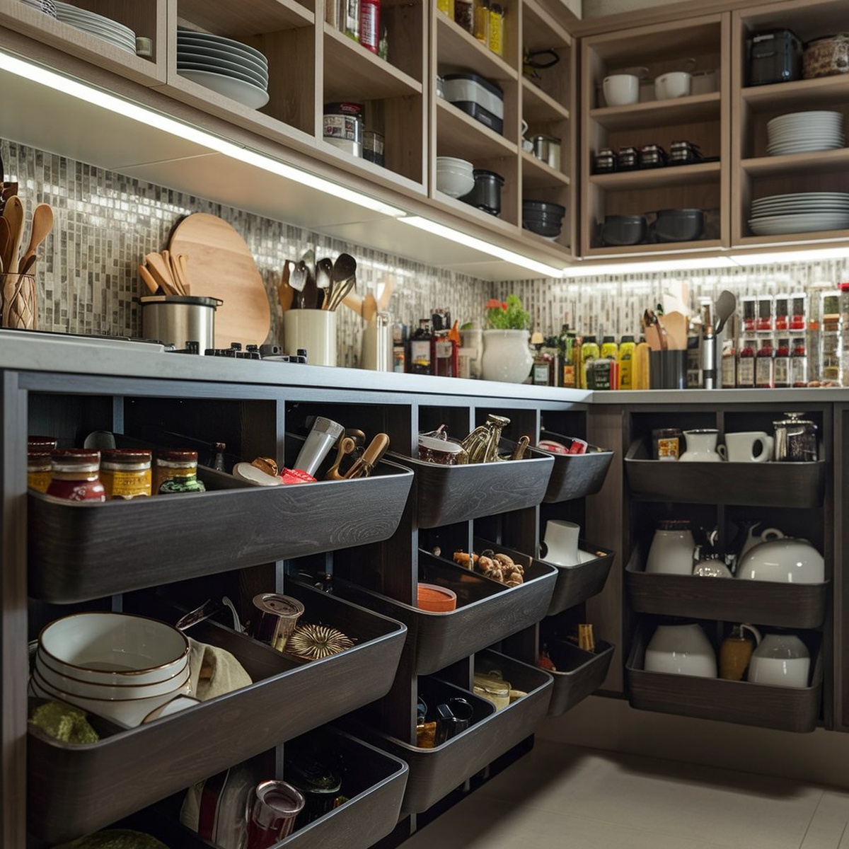 Pull-out shelves are a game-changer for organizing your cabinets and making your kitchen more functional. These handy shelves turn cluttered spaces into tidy, accessible areas where everything is within reach.