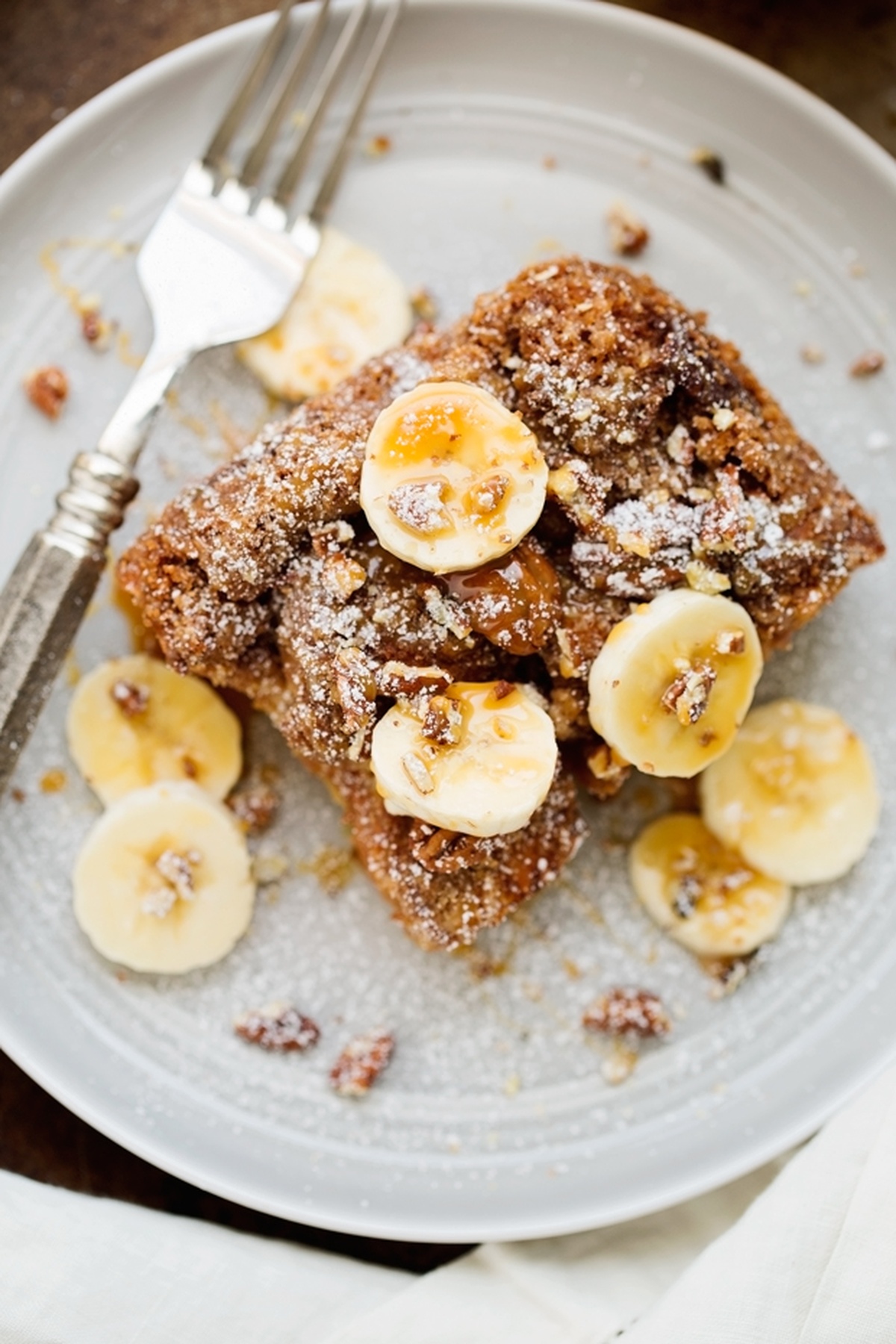 Thick slices of bread are then soaked in this mixture before being cooked on a griddle until they achieve a golden brown finish. Topping the dish with crunchy walnuts or pecans adds texture while drizzling maple syrup alongside fresh banana slices enhances its sweetness.